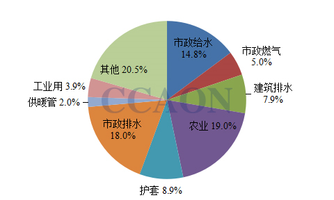 中國塑料管道主要應(yīng)用領(lǐng)域占比