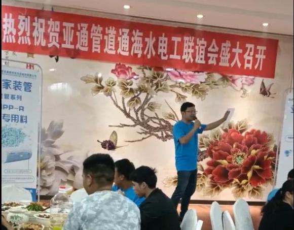 聯(lián)誼會正式開始后,首先由此次聯(lián)誼會的主辦方代表、亞通通??h區(qū)域負責(zé)人、也是此次聯(lián)誼會的主持人段利斌上臺進行發(fā)言。他對此次能與眾多工友師傅們一起交流經(jīng)驗、探討學(xué)習(xí)感到十分榮幸。也對諸位來賓百忙之中抽出時間來到活動現(xiàn)場,表示誠摯的感謝。尤其最感謝在通海地區(qū)對亞通管道推廣做出的卓越貢獻的通海區(qū)域服務(wù)商。