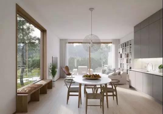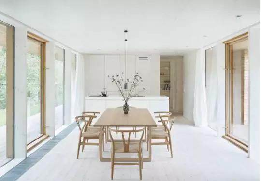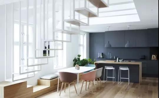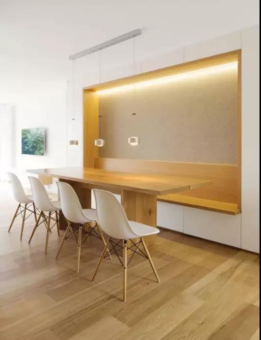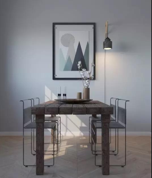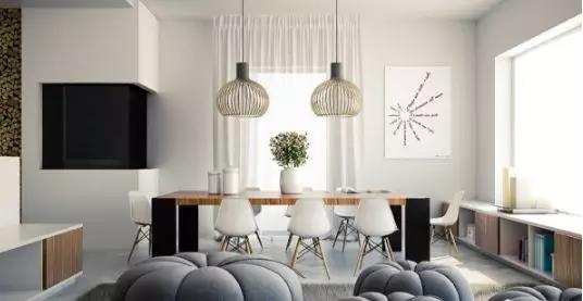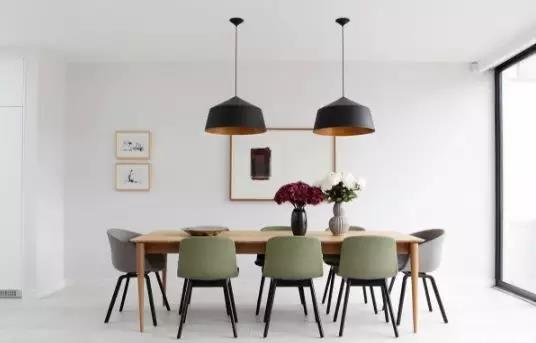 如果餐廳面積不夠大,還可運用一張北歐風(fēng)格的長形餐桌去拉長整個餐廳的長度。