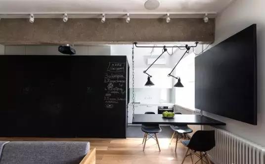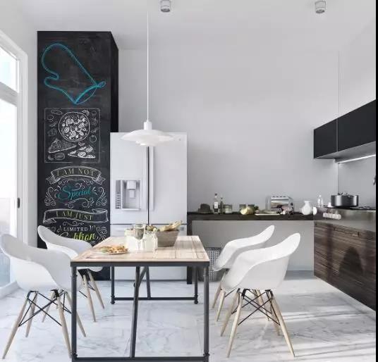 在極簡主義風(fēng)格的餐廳中,使用一面黑板墻等創(chuàng)意元素,增添個人風(fēng)格特色。