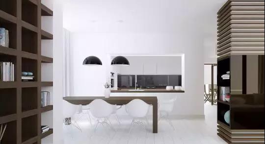 在極簡主義風(fēng)格設(shè)計中,深色不如鮮明的白色,比黑色更加溫和,融入其中有鮮明的對比效果。