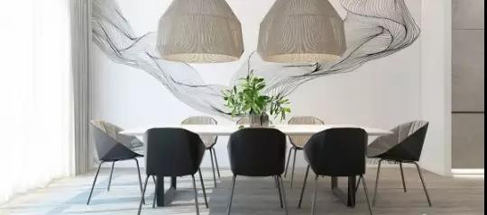 這間極簡主義風(fēng)格餐廳,簡約的色調(diào)加上簡潔的線條感,彰顯極簡主義美感。具有藝術(shù)性的吊燈與墻畫,有中國風(fēng)流云之美。