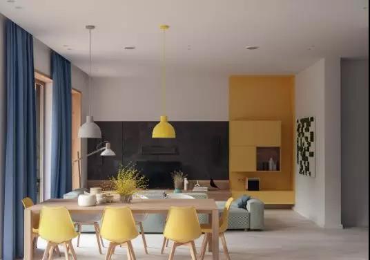 餐廳與客廳,廚房融為一體時、色調(diào)、家具、以及裝飾元素都該保持在一個水平,這樣才能使整個空間統(tǒng)一和諧。