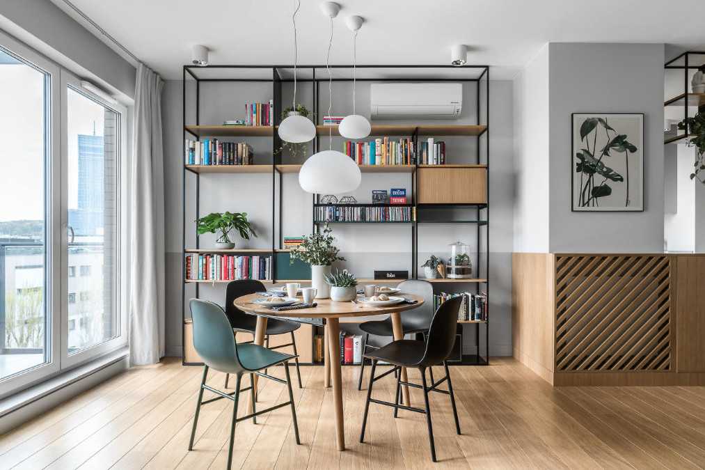 ▲在全家人看來,餐廳不應(yīng)該被獨(dú)立出去,而是需要與客廳相連,打造一個通透、相融的功能區(qū),餐桌旁定制的展示架上整齊的擺放著書籍,唾手可得的便捷令等待的時光也變得美好。