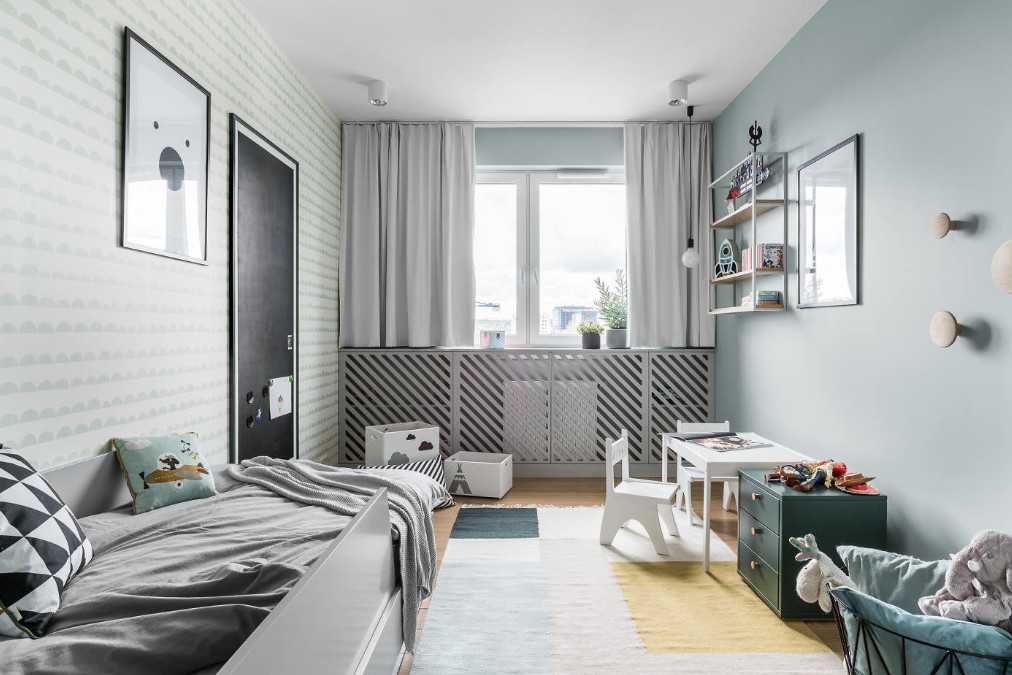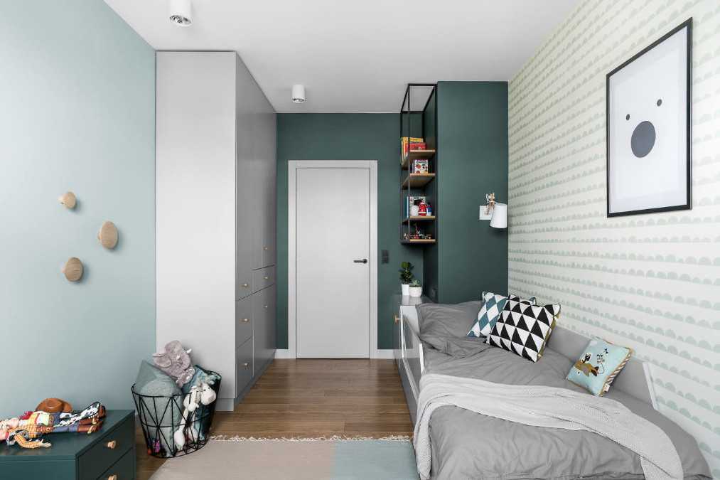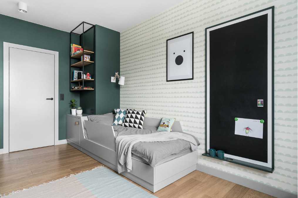 ▲兒童房延伸了對森林綠的使用,并在地毯、墻面、靠枕的物品選擇上使用了更為跳躍、明亮的淺綠,為孩子帶來專屬的活力與趣味。