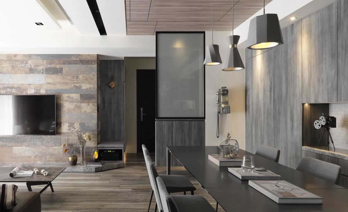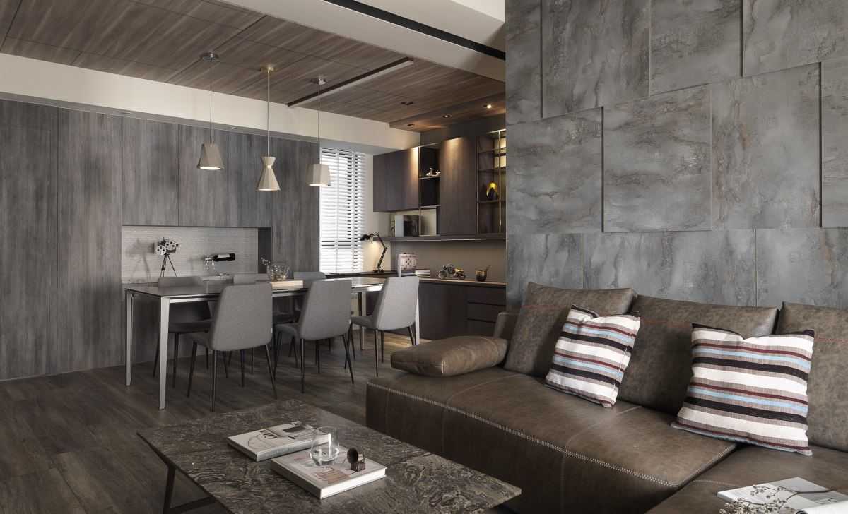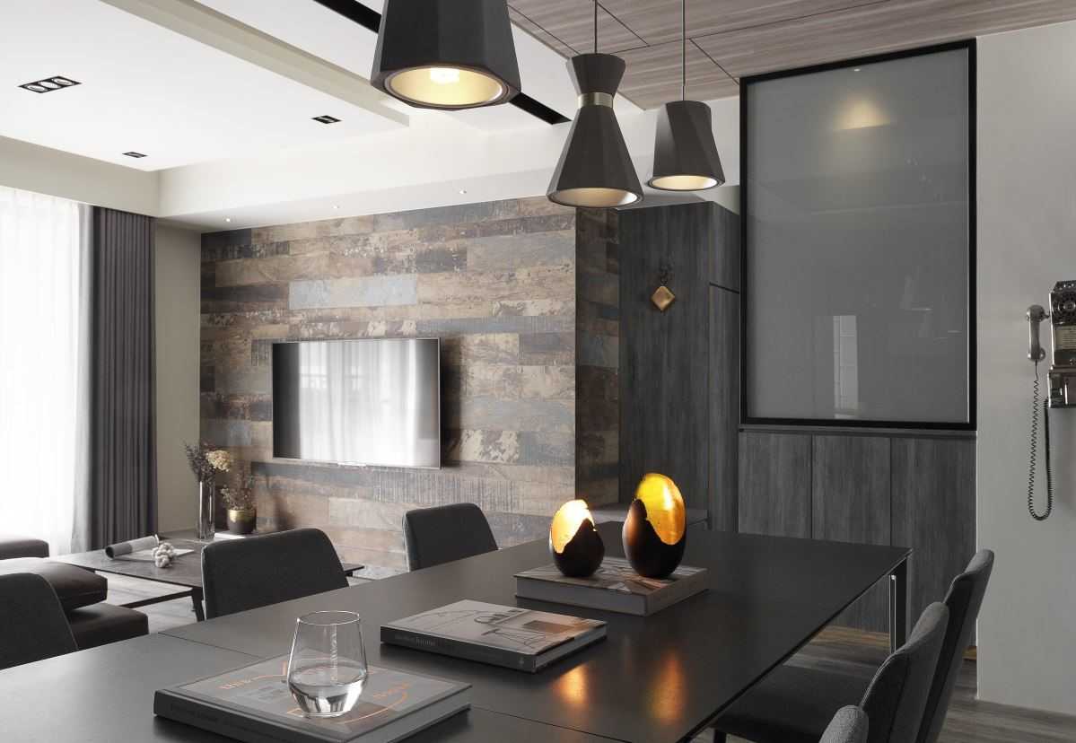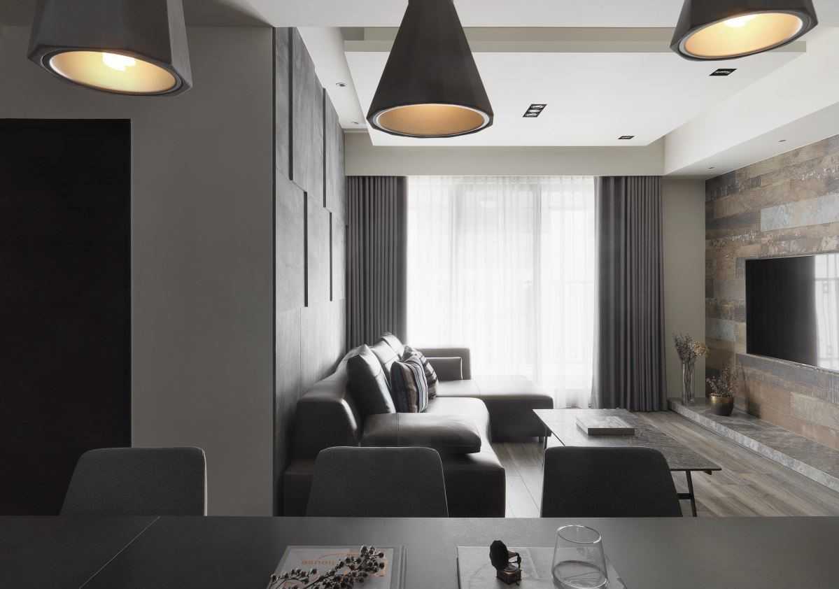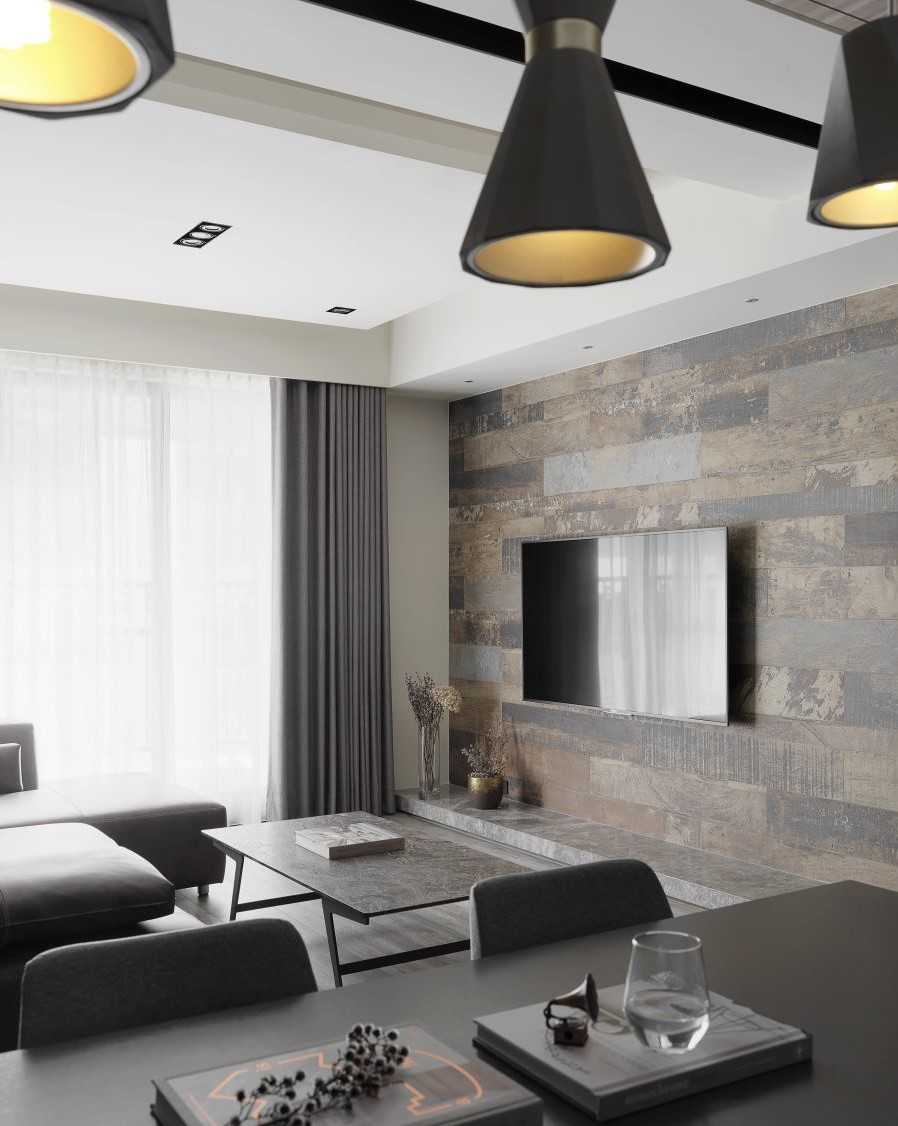 公領(lǐng)域地坪的仿舊木紋磚、復(fù)古味十足的電視墻以及深灰質(zhì)感的特殊立面質(zhì)材,讓同色系的視覺空間堆疊出細節(jié)層次,而幾盞有暖度的黃光特色燈具,加乘了居家生活氛圍與特色。