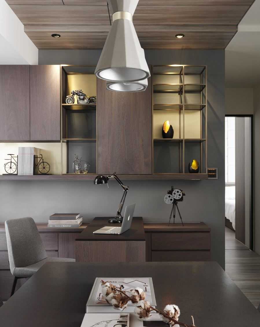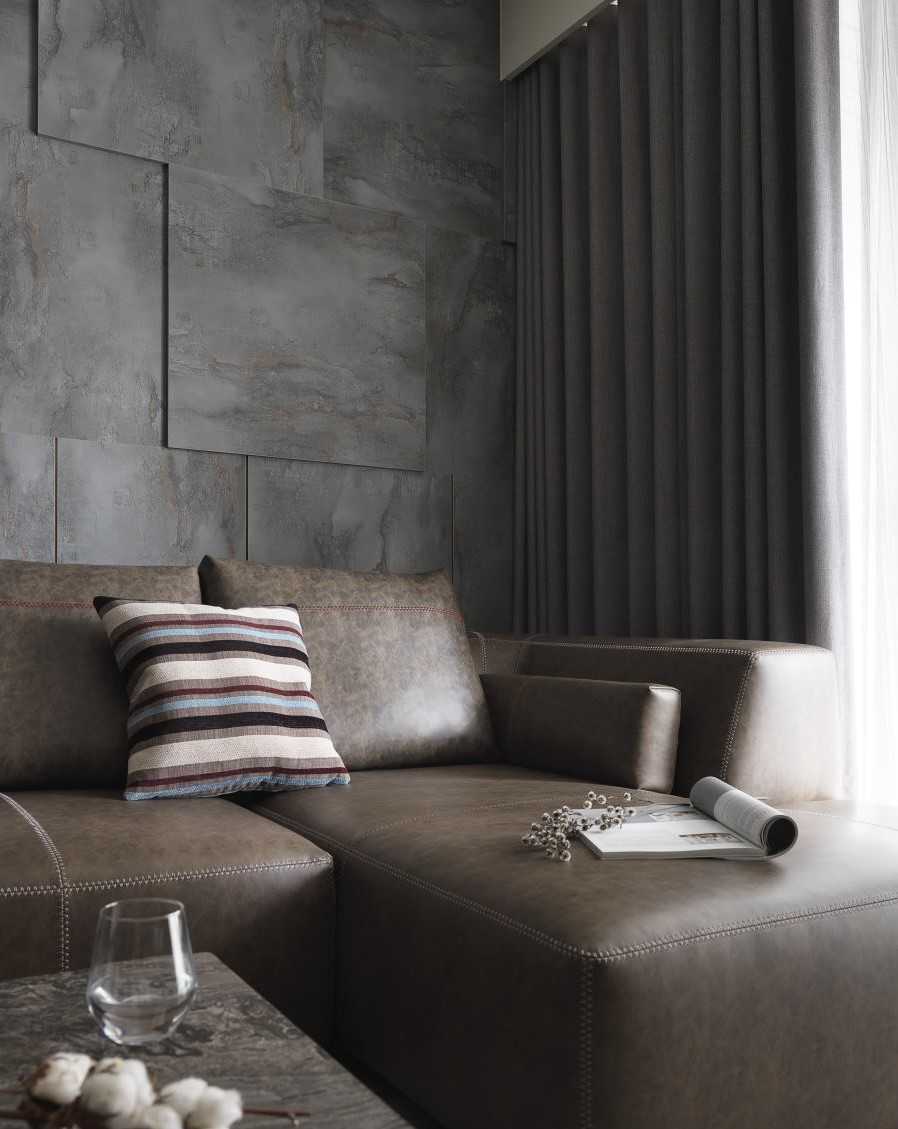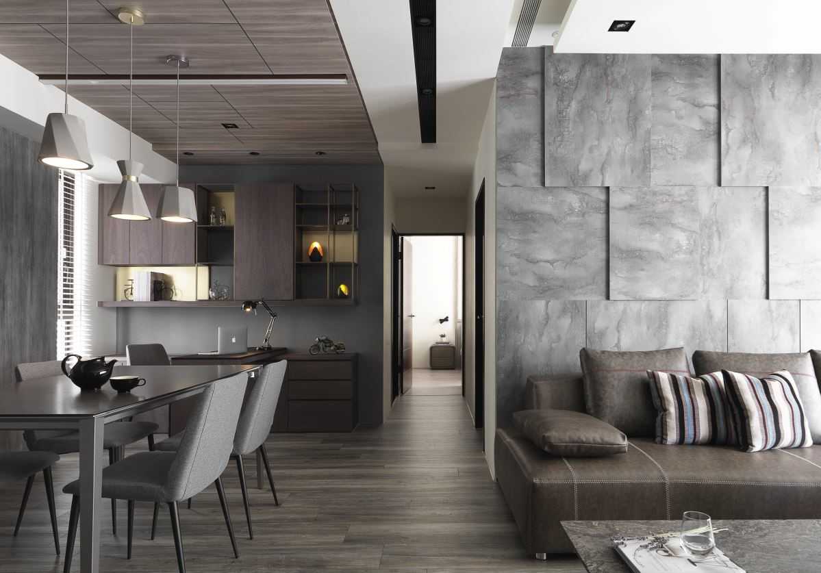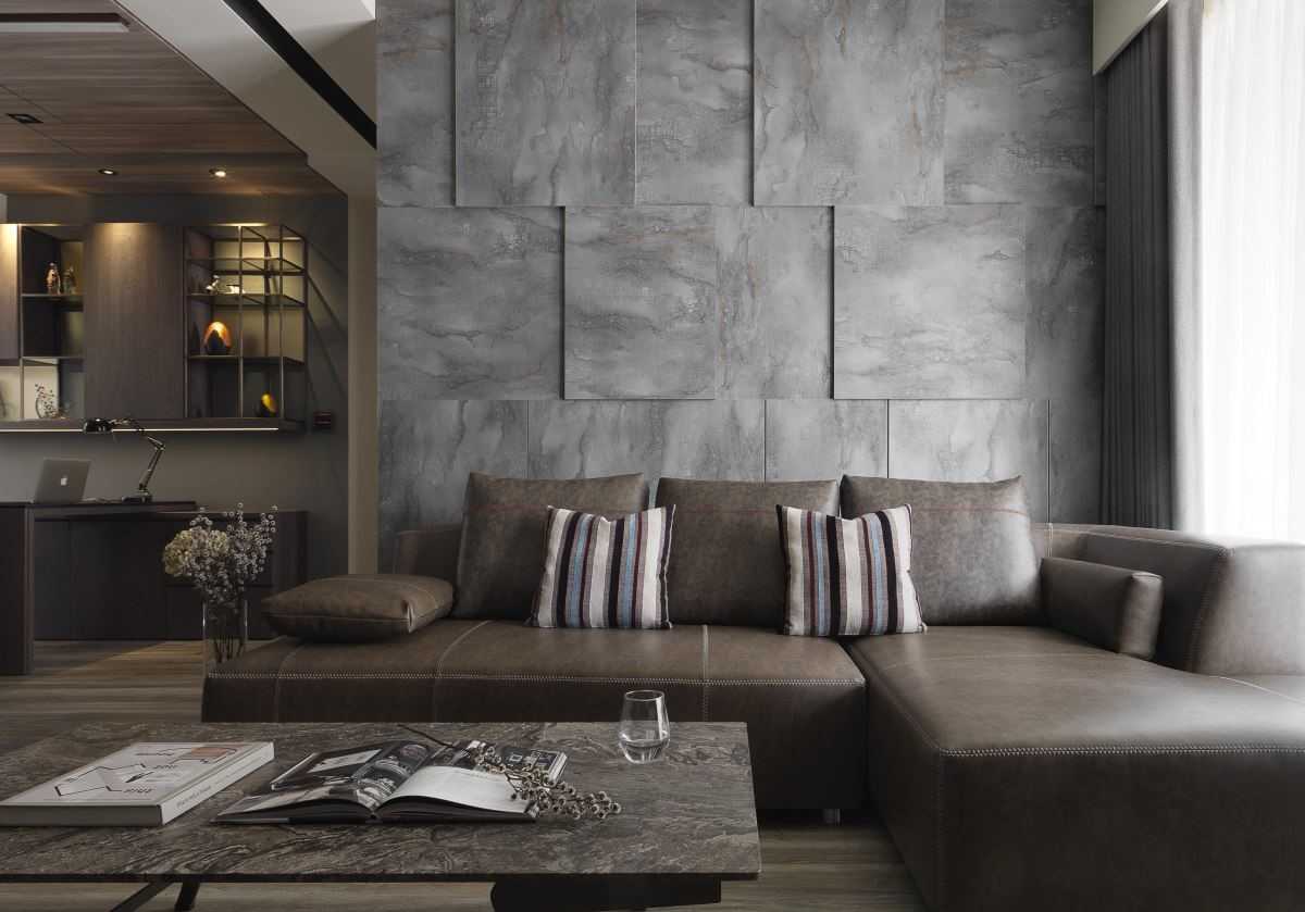 公領(lǐng)域地坪的仿舊木紋磚、復(fù)古味十足的電視墻以及深灰質(zhì)感的特殊立面質(zhì)材,讓同色系的視覺空間堆疊出細節(jié)層次,而幾盞有暖度的黃光特色燈具,加乘了居家生活氛圍與特色。