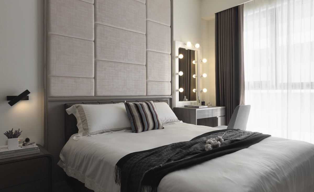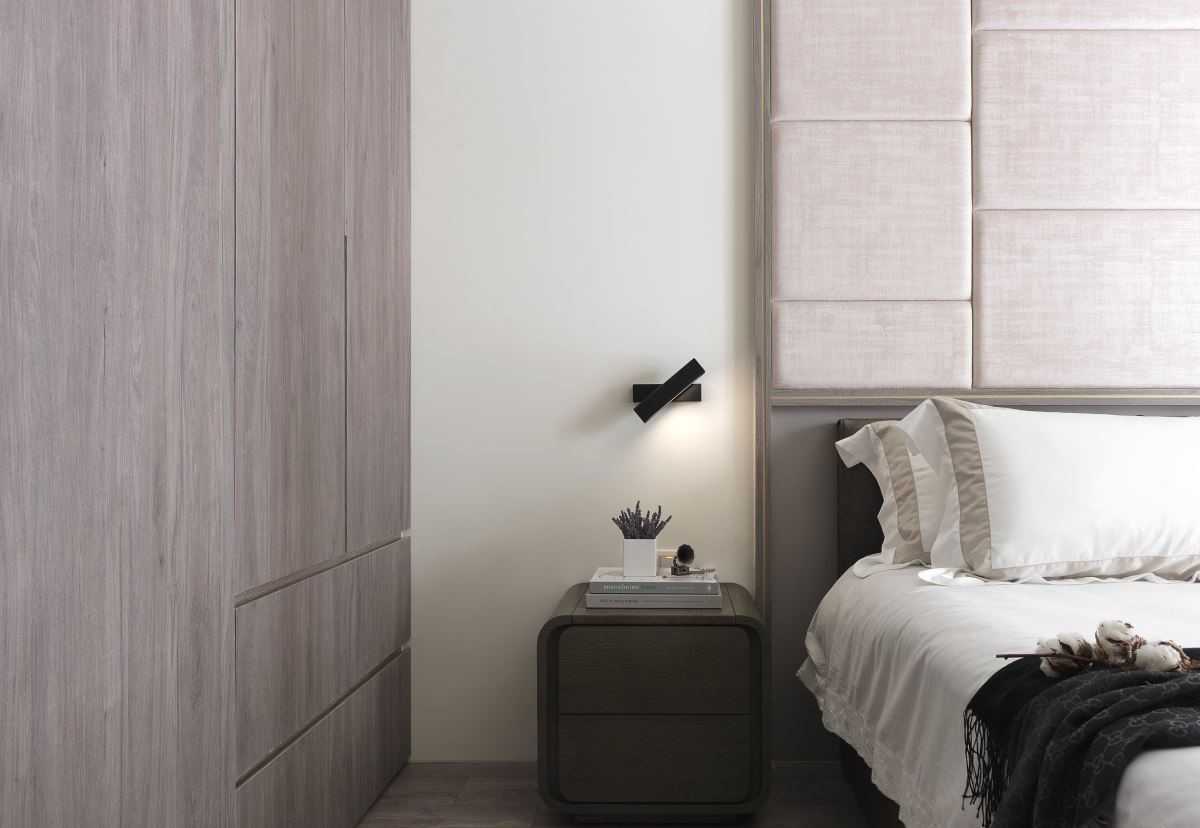走進私領(lǐng)域,有別于公共空間的沉穩(wěn),換上輕盈的淺色系,予以私人空間更減壓的放松氣息。
