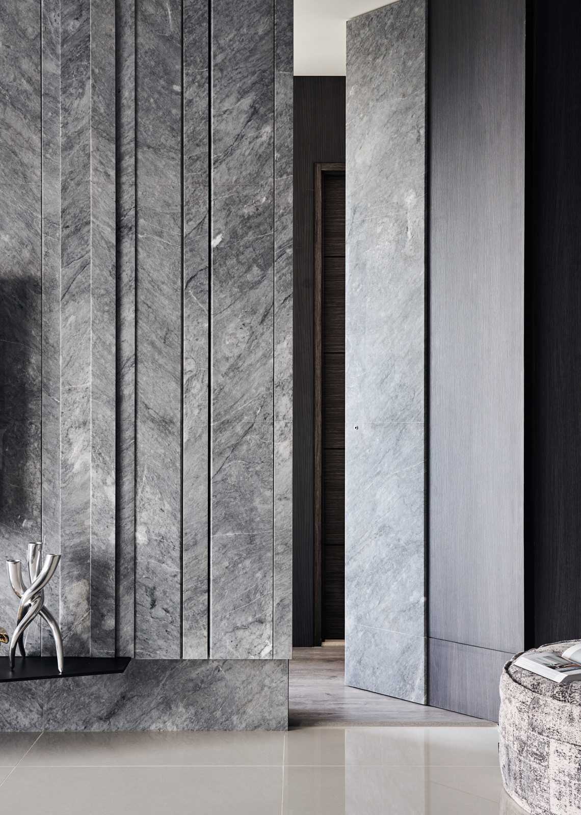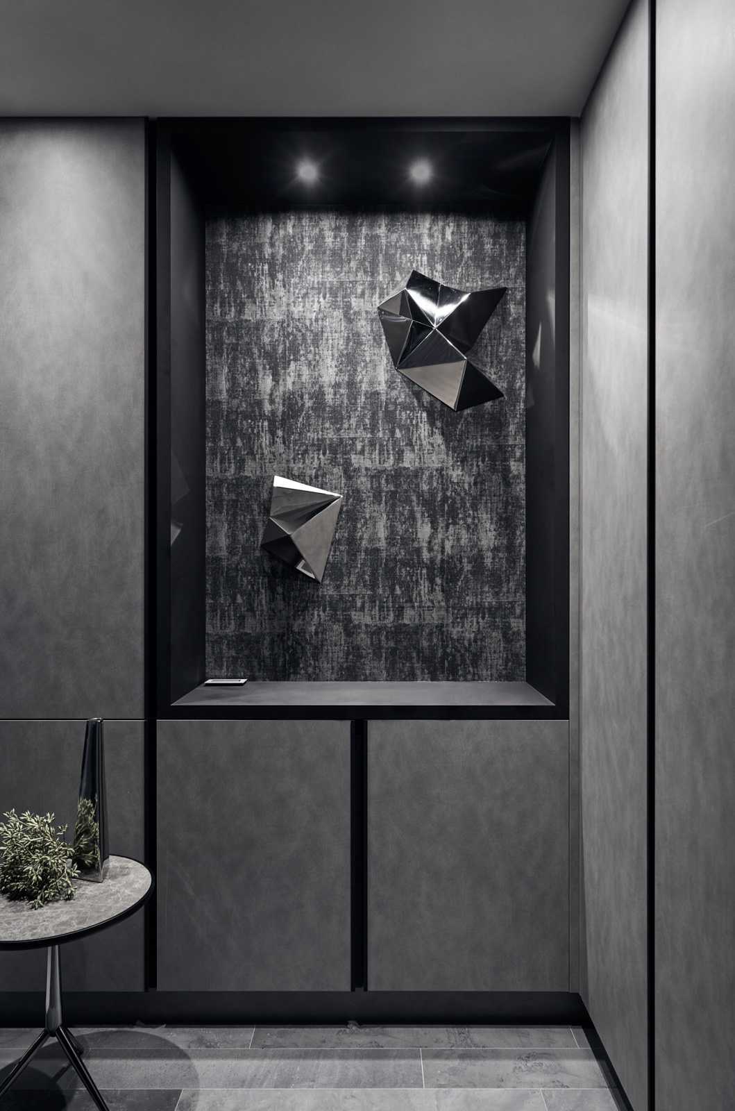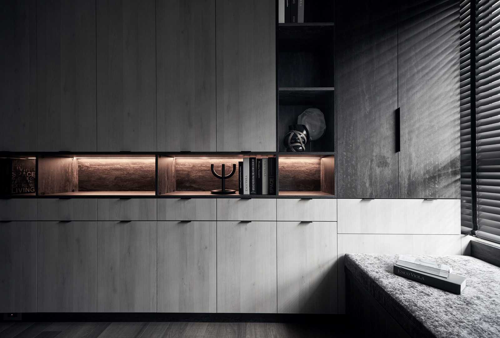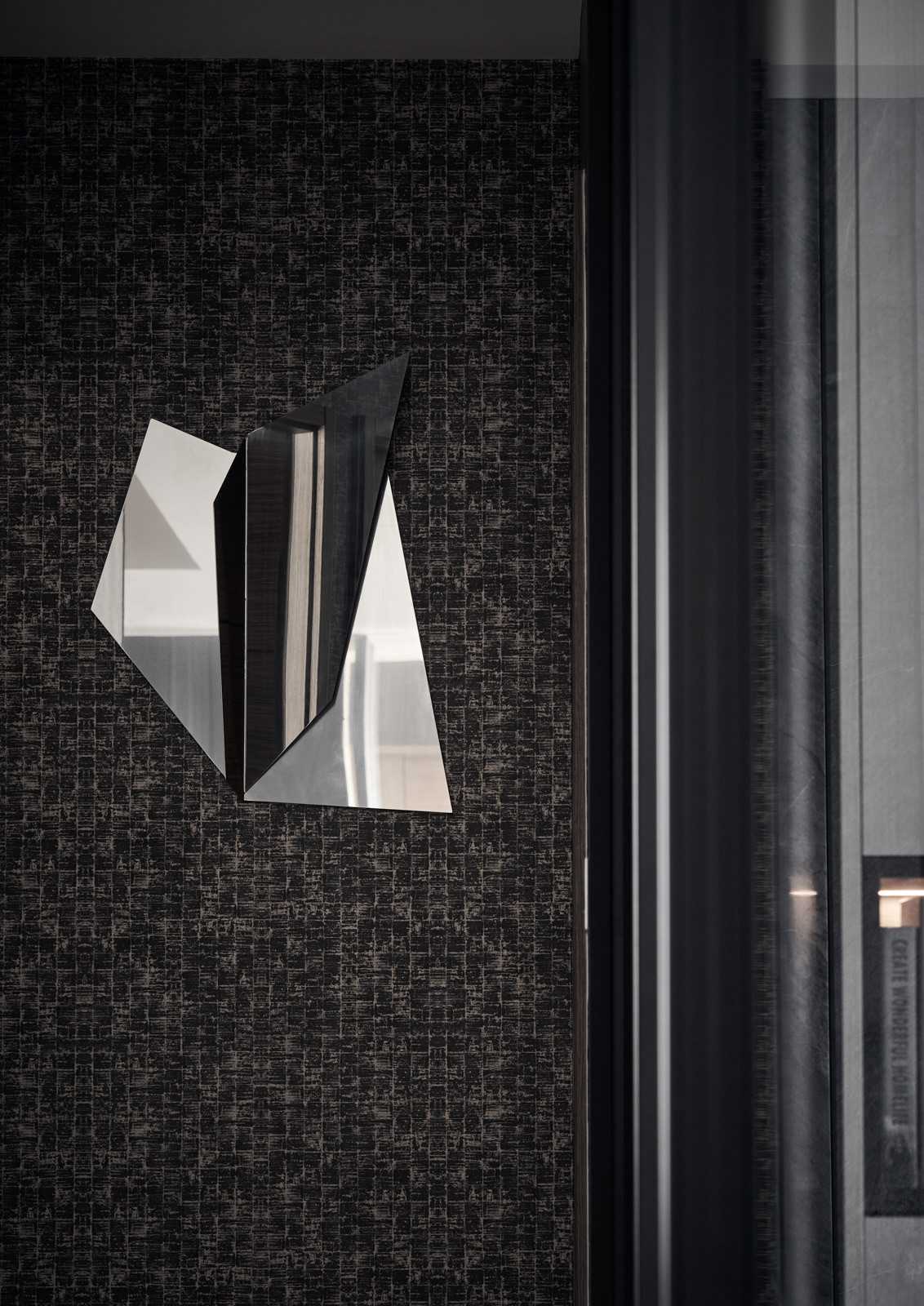 時間精釀了長年以來的付出,昔日懷抱著的夢想一步一步被實踐,擁有了自己的品牌、能在招牌底下埋入獨有的見解,與屋主并肩隨行,激蕩出對這個家共有的完美想像。終于有一天,設計師倚靠對美好事物的洞悉,激發(fā)靈魂里屬于藝術(shù)家的部分,創(chuàng)作出玄關(guān)處傾斜45度角一面全身鏡、房門外切割重組的梳妝鏡、鑲在灰墻上幾何掛飾? ?不規(guī)則的玻璃造型有如散落的星兀自在空間里閃亮,為沈靜色系點上光芒,為畫面拼上最后一片迷人色塊。