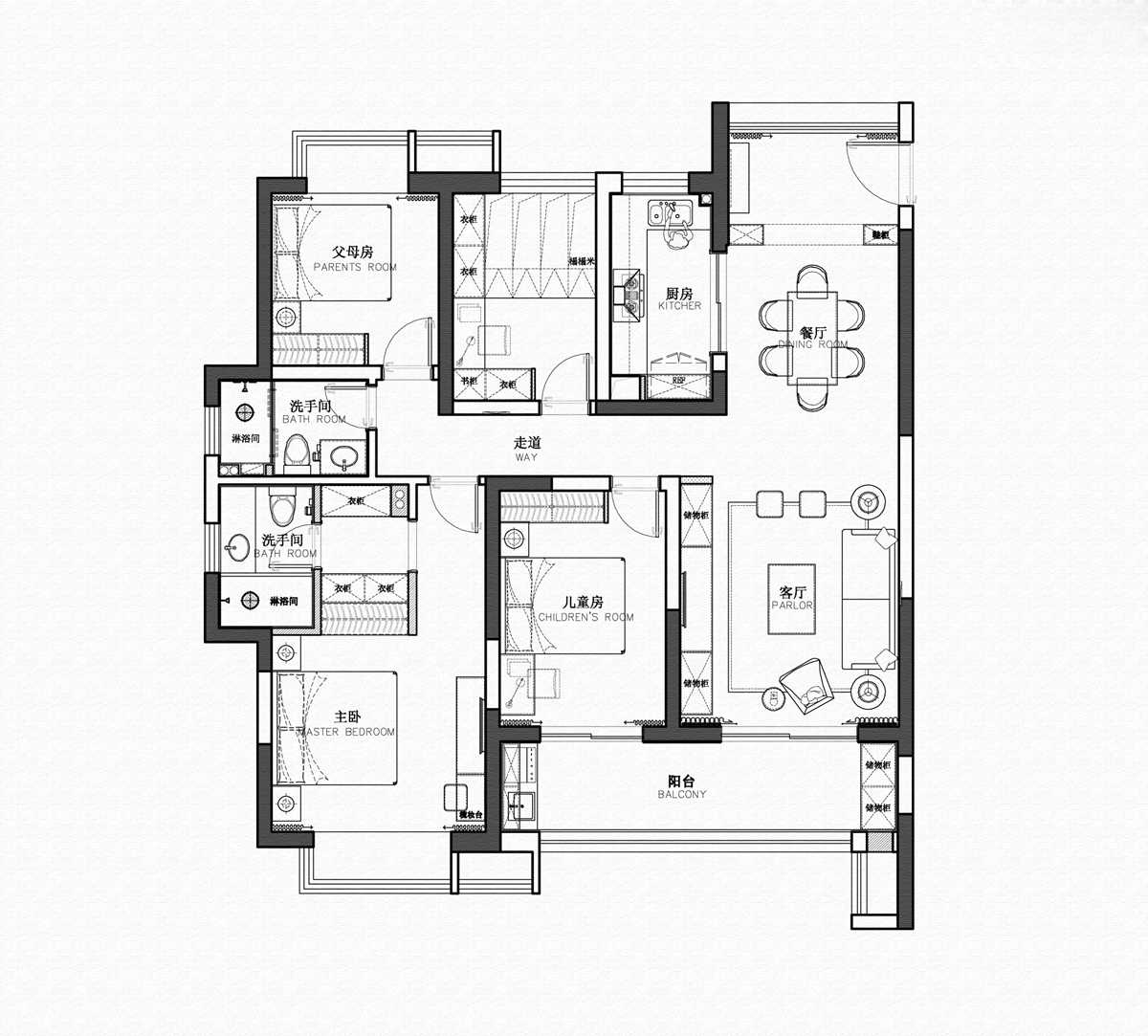 本案是幸福的四口之家的現(xiàn)代美式新房。熱情的女主人與穩(wěn)重的男主人性格迥異,相同的卻是他們?yōu)閷Ψ娇紤]的心和對我們的信任。