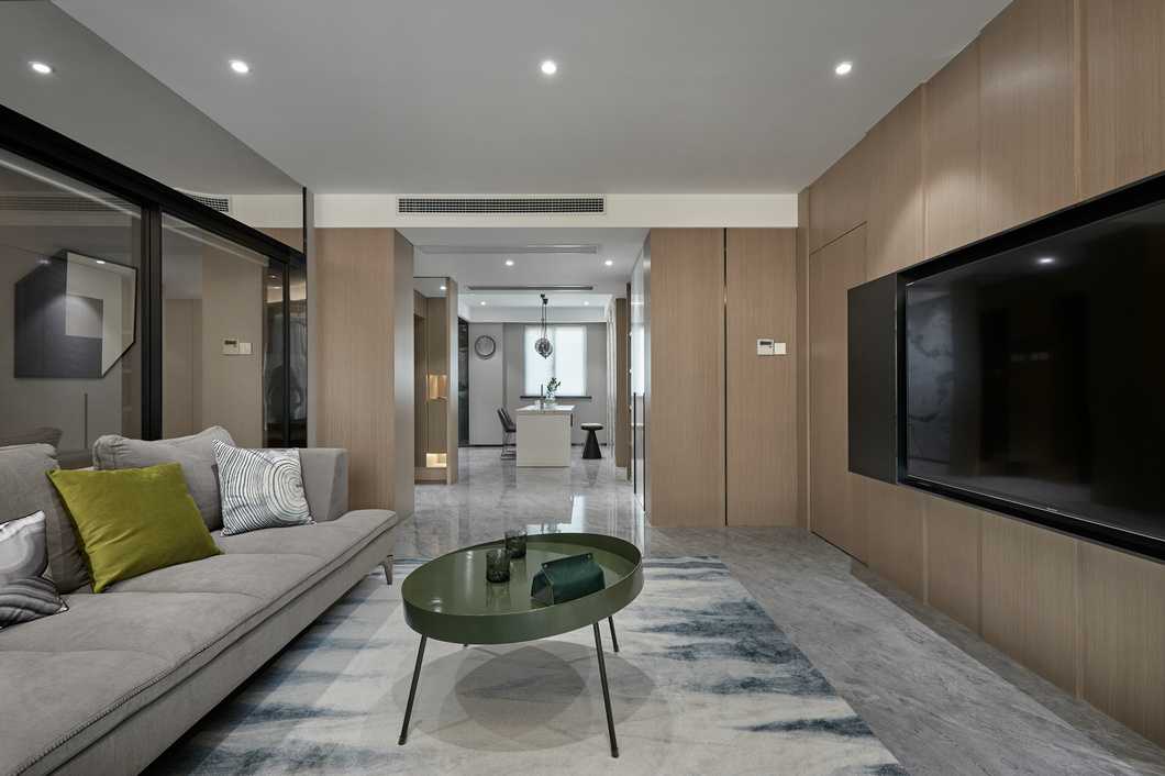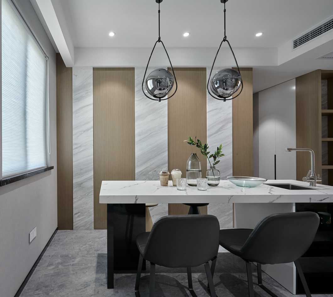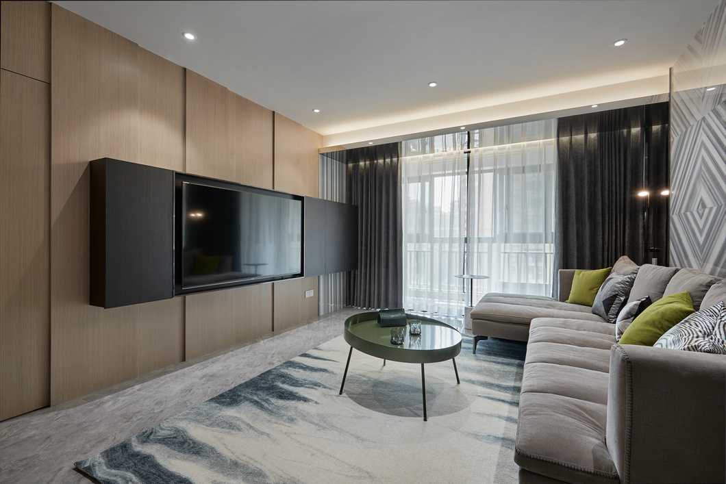 客餐廳縱向線(xiàn)條拉伸感極強(qiáng),不同材質(zhì)相互碰撞,以及恰當(dāng)?shù)墓庥皩^(qū)域空間揉為一個(gè)整體。電視背景墻高低錯(cuò)落,并且把電視柜“抬”到了墻上,保留儲(chǔ)物功能的同時(shí)帶入了當(dāng)代設(shè)計(jì)流行元素。凝練簡(jiǎn)約現(xiàn)代的生活質(zhì)感,光影襯出選材的自然肌理,在木頭的溫潤(rùn)與石材的剛硬凌冽交織一起,勾勒出獨(dú)特的空間氣質(zhì)。
