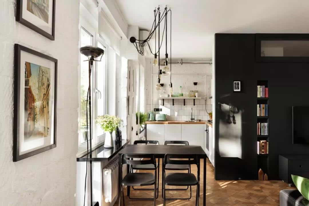 非常大膽的時(shí)尚公寓設(shè)計(jì),這套僅有43平方米的房子,給人留下深刻印象。以啞光黑色結(jié)構(gòu)為中心,在外面裝有娛樂(lè)系統(tǒng),然后它的內(nèi)部竟然隱藏了一個(gè)浴室??