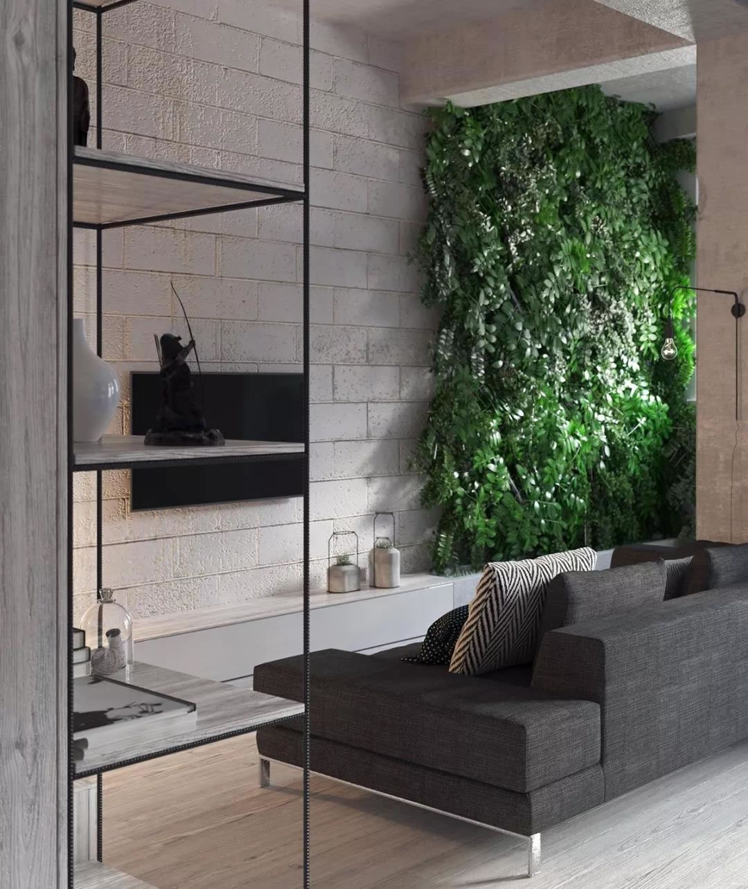 用藤蔓為墻壁增添色彩,另一方面有助于平衡設(shè)計(jì)里的工業(yè)材料。